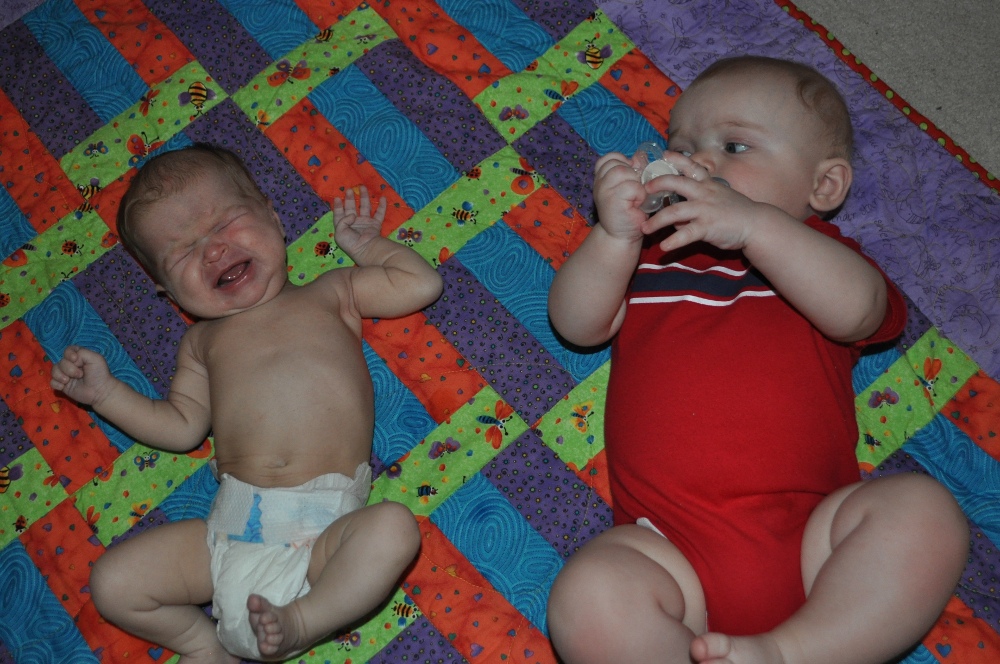 Aunt Megan and cousin Cailey came to visit for a while today. Cailey is just over a month old now. I don't think he knows what to think of her. He's only really been around kitties this size. LOL